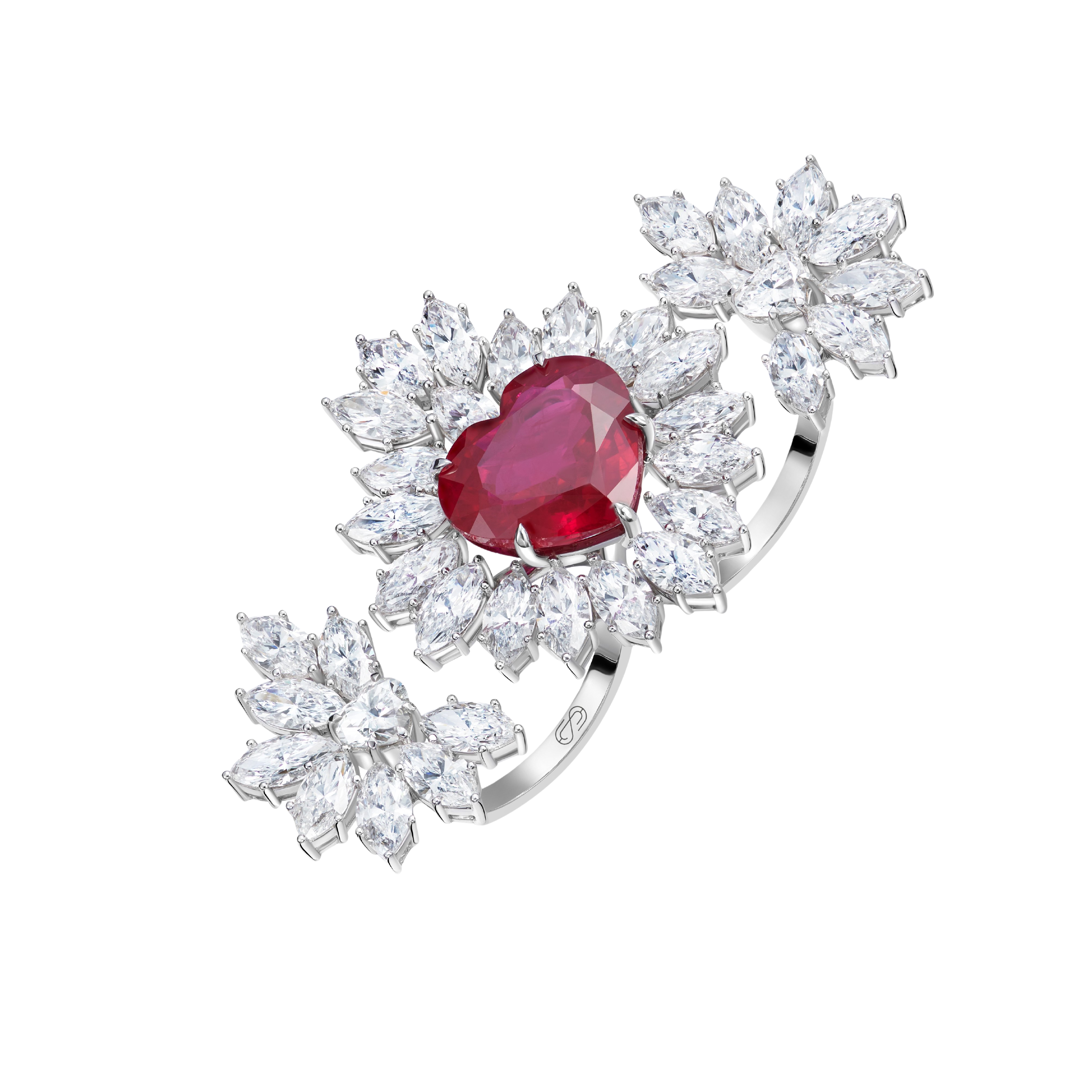 "HEART RAYS" RUBY DOUBLE RING 11.494 CTW 18k White Gold