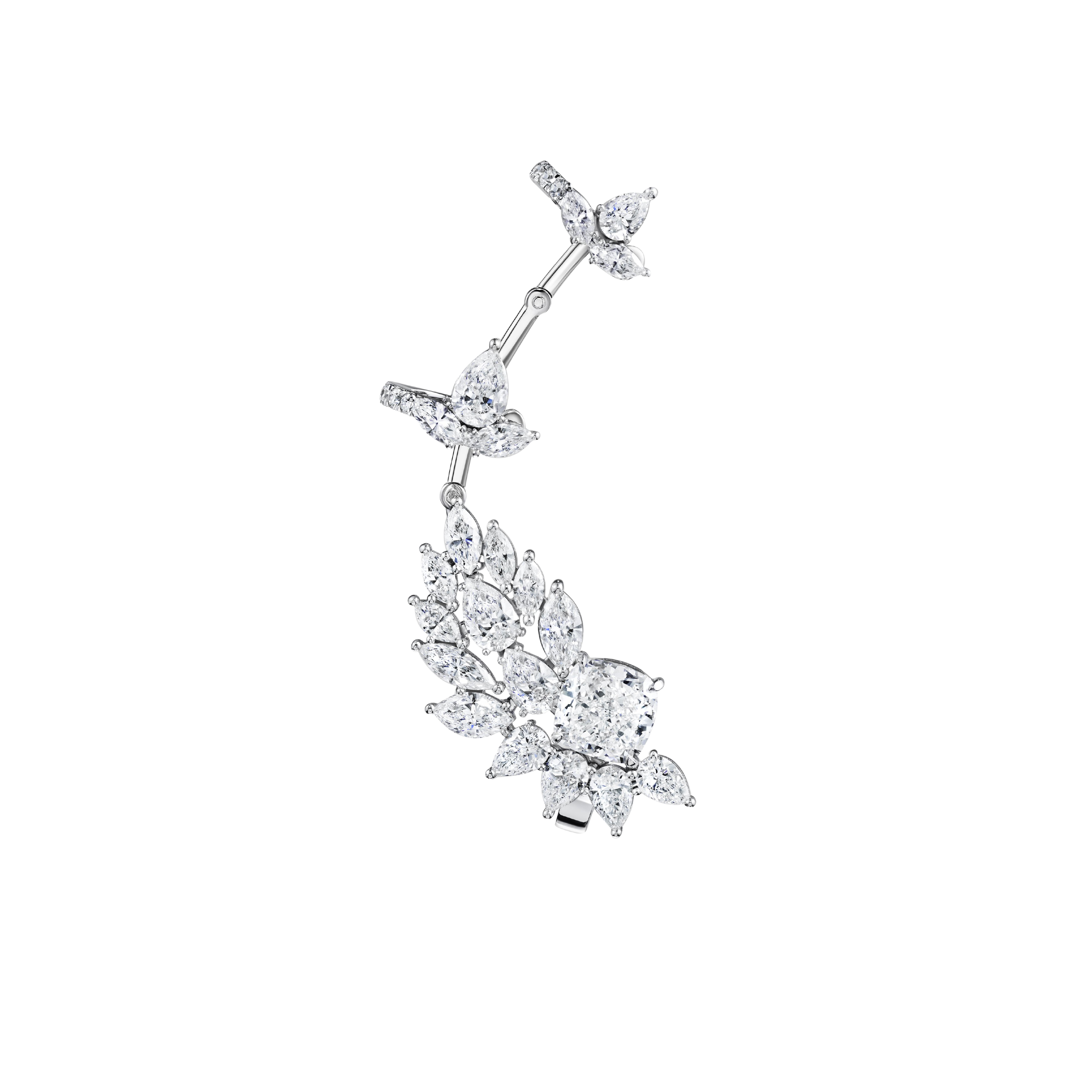 Precious Metal: 18k White Gold Stone: LG Diamond Carat Total Weight: 8.072 Color/Clarity: F+/VS1+ Stone Shape(s): Round, Cushion, Marquise, Pear Back: Omega