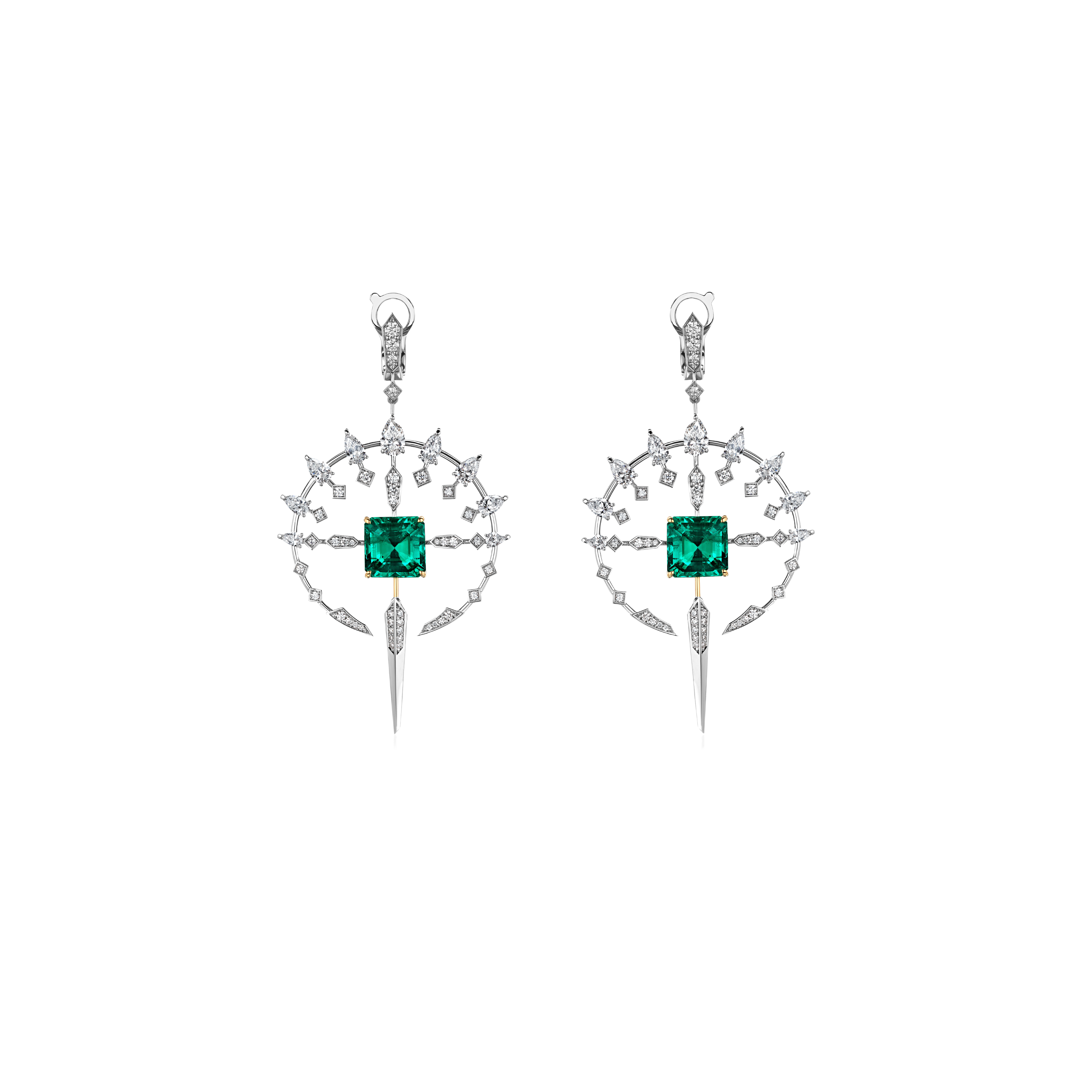 "NORTH STAR" EMERALD EARRINGS / 18.624 CTW 18K White Gold