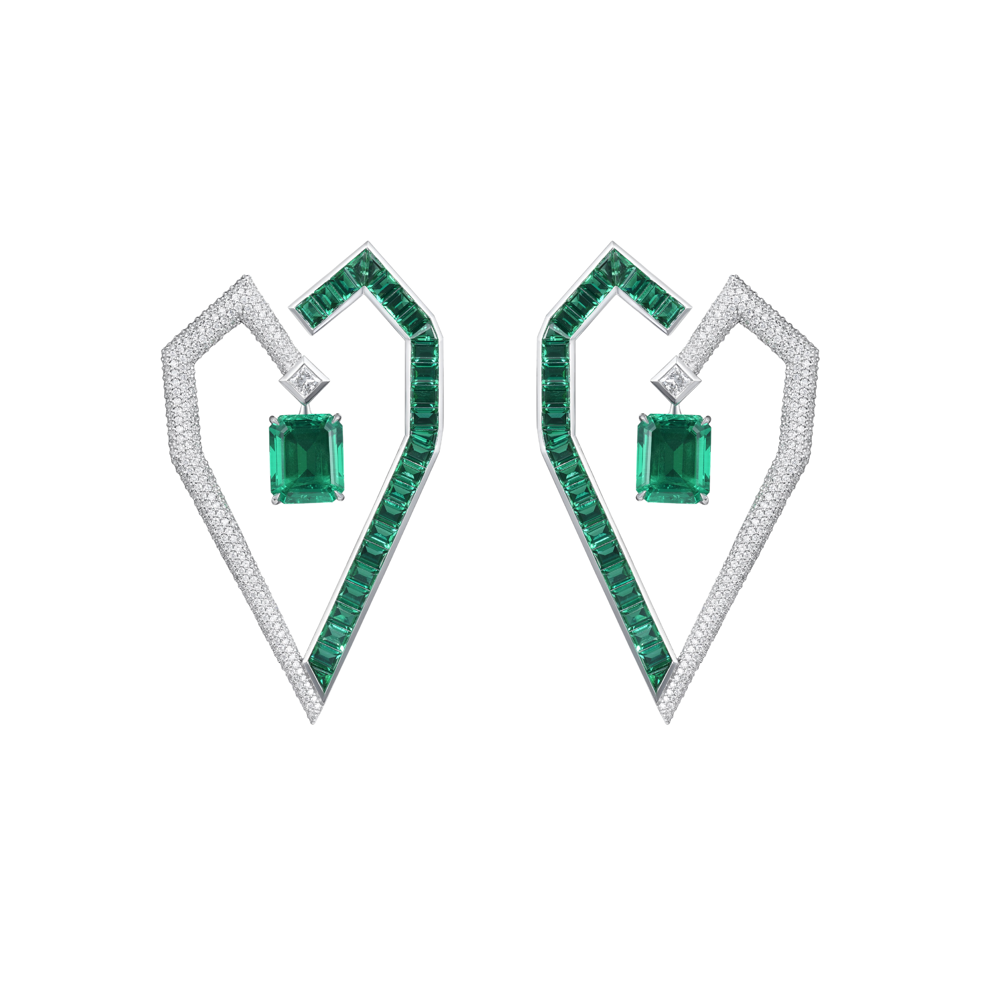 "THE WAY OF HEART" EMERALD EARRINGS / 17.25 CTW 18K White Gold