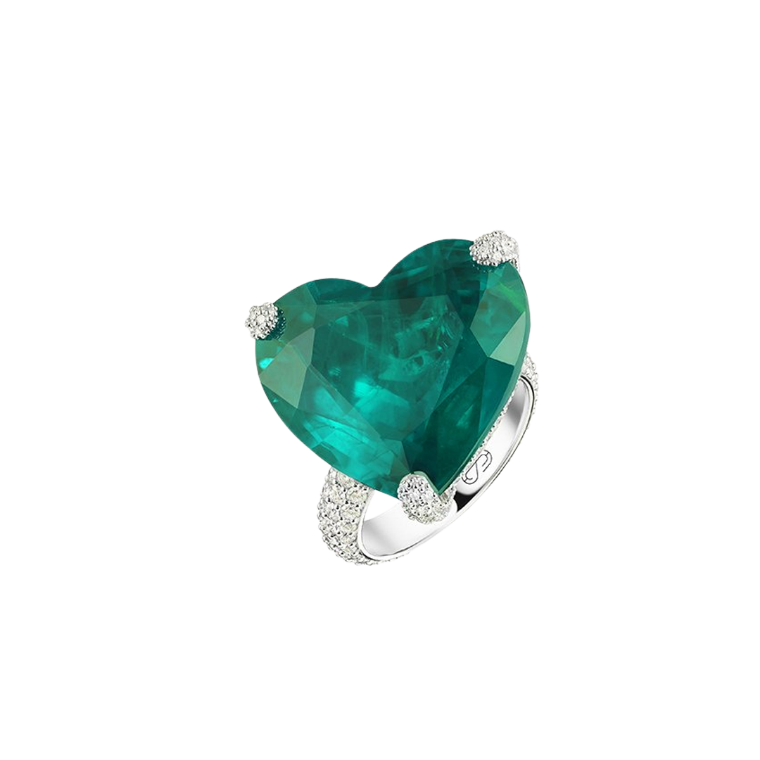 "HEART CONSTELLATION" EMERALD RING / 29.626 CTW 18K White Gold
